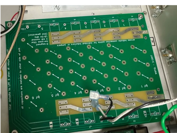 It uses the PCB from W6PQL, all filters are 5 order Chebychev of my own design. All capacitors are 1812 1KV to 3KV and the toroids are T130-2 or T106-6